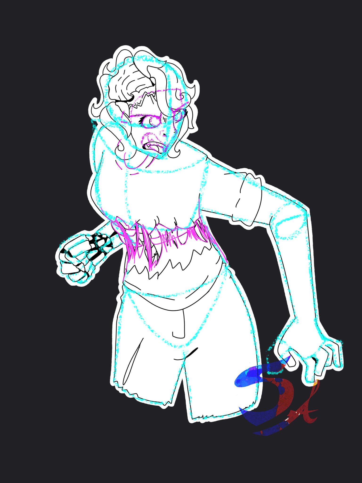 First, I sketched my character on Procreate. This assignment is to have multiple colors in each square for the Color Unit.